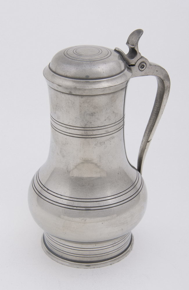Schenkkan van tin, vervaardigd door Metaalwarenfabri...