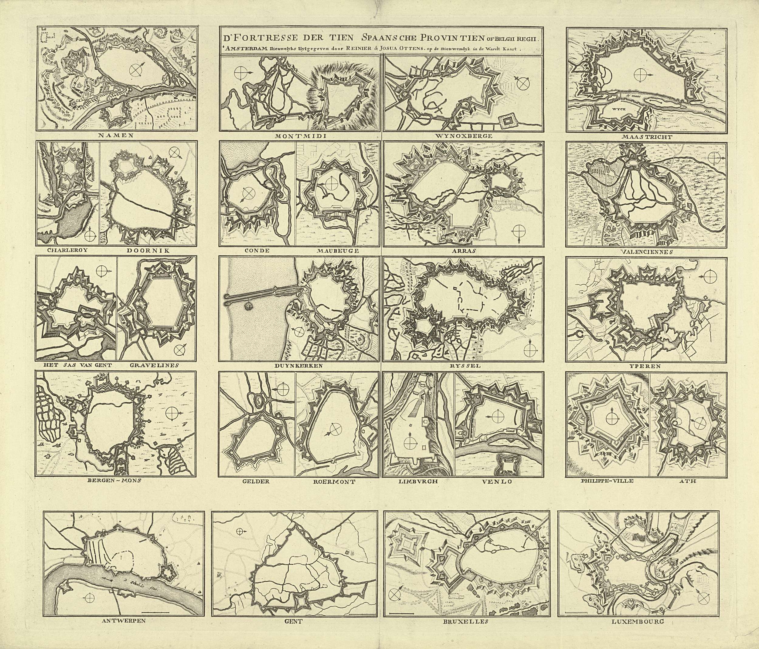 Blad met plannen van 26 vestingsteden, ca. 1747