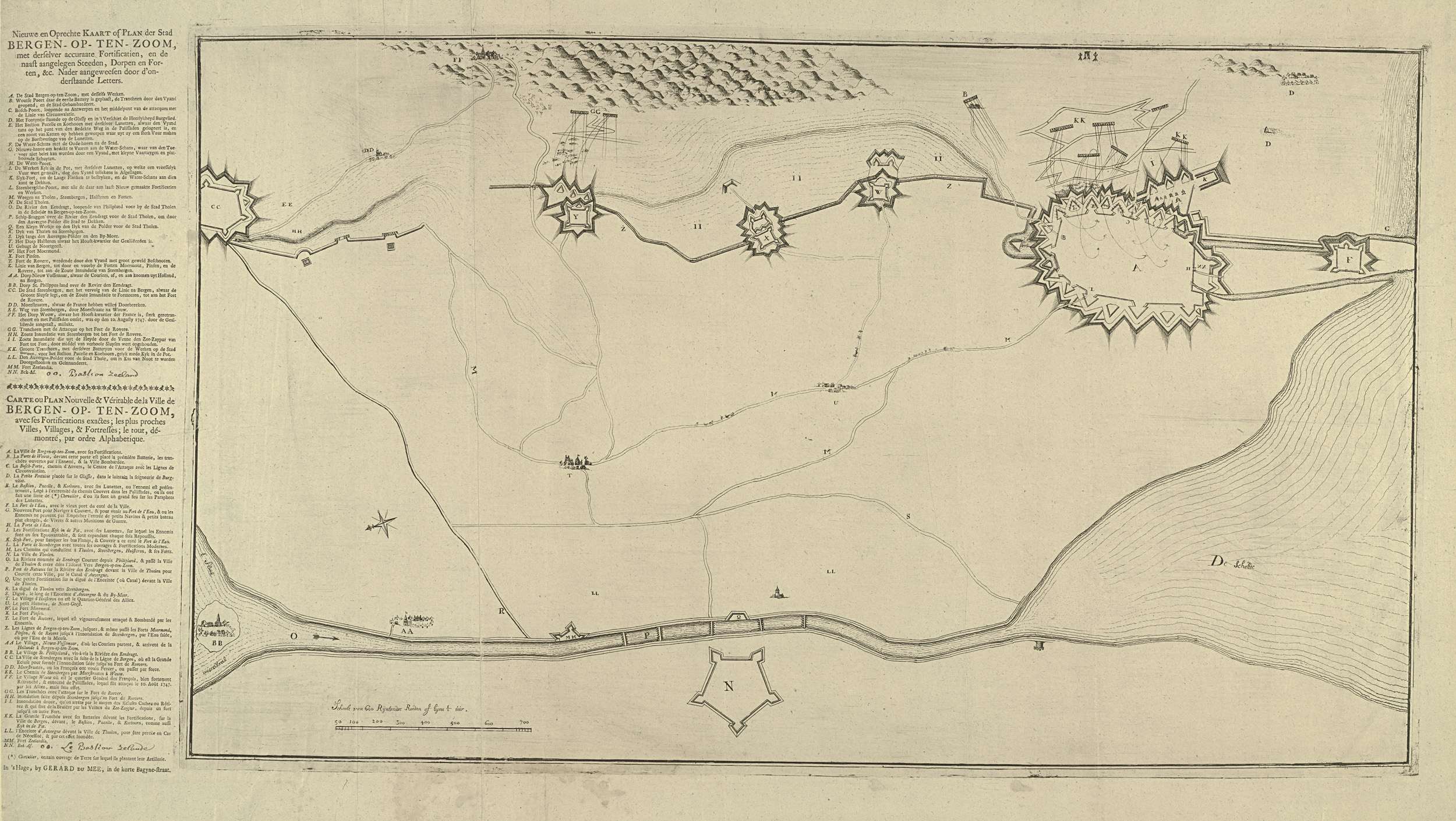 Kaart met de versterkingen om Bergen op Zoom en fort...