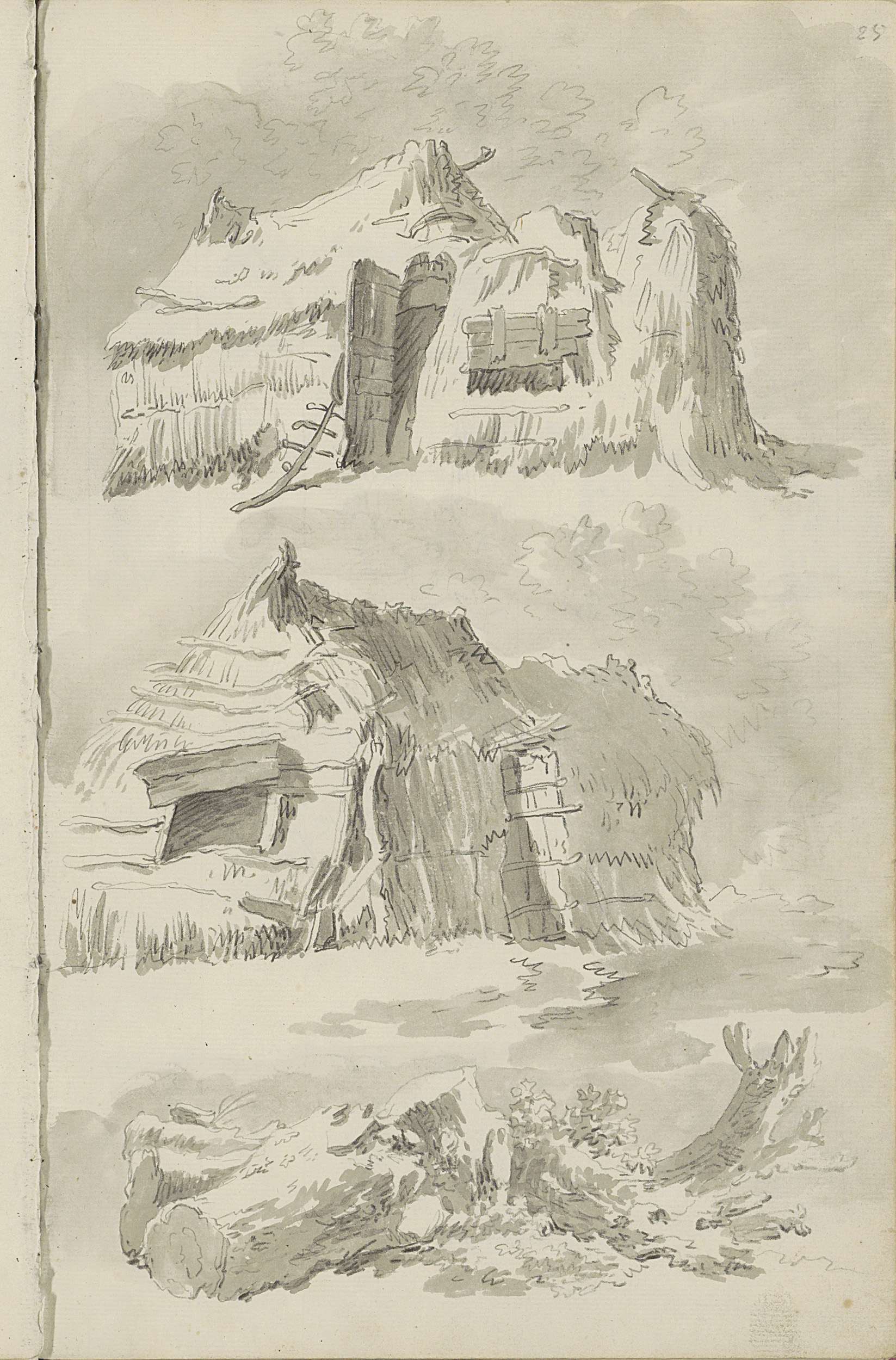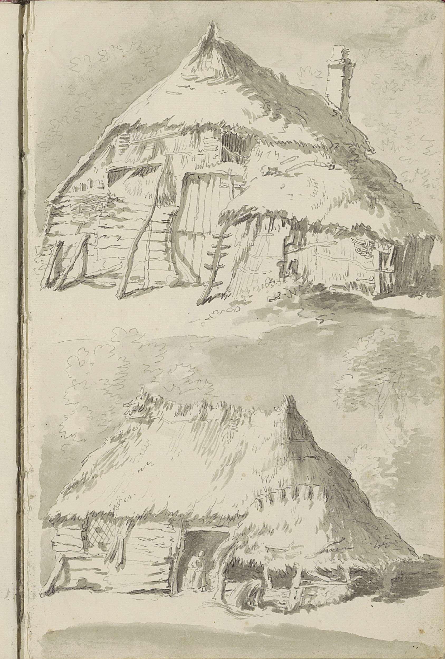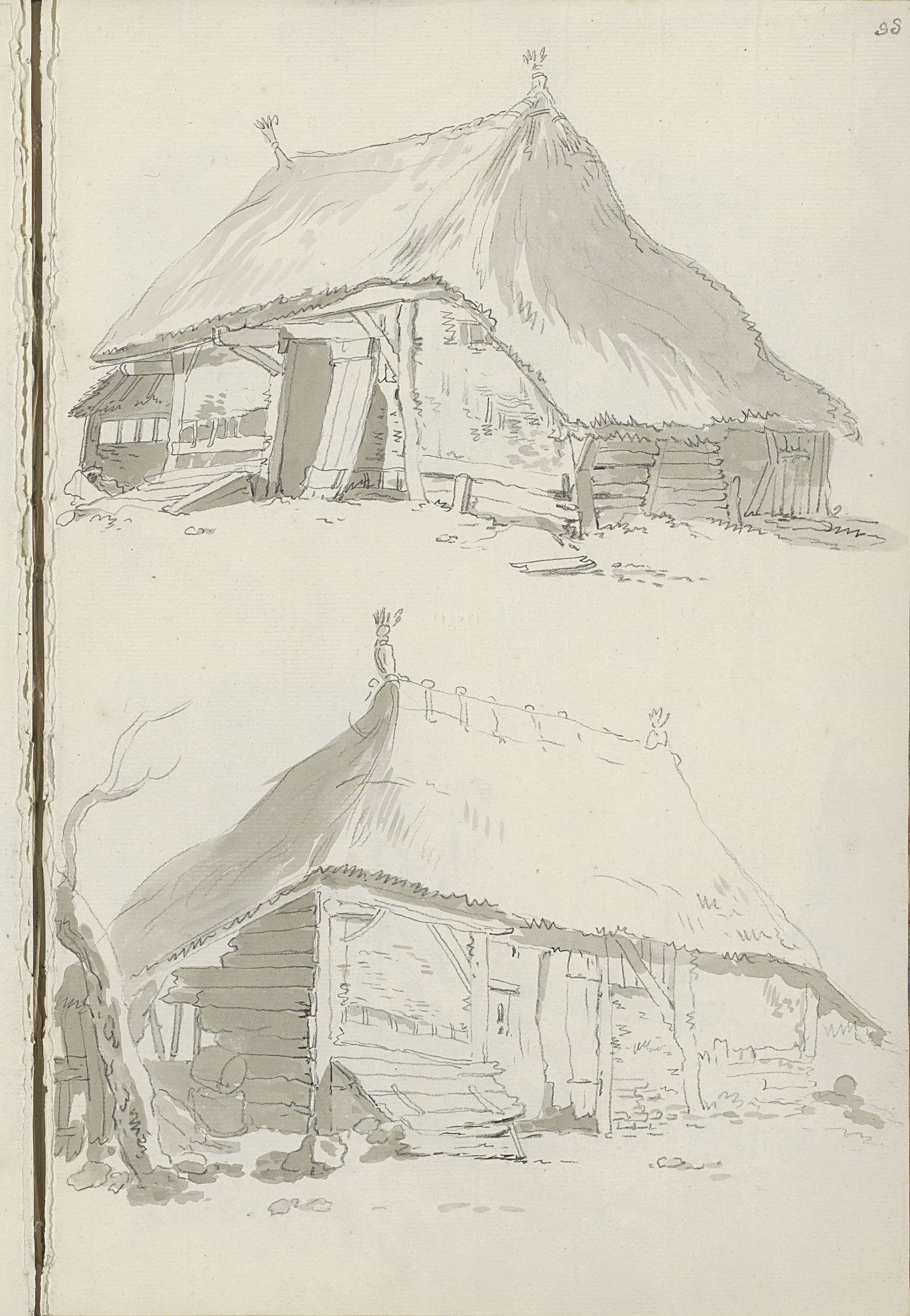 Gebouw met torens en boerenhutten