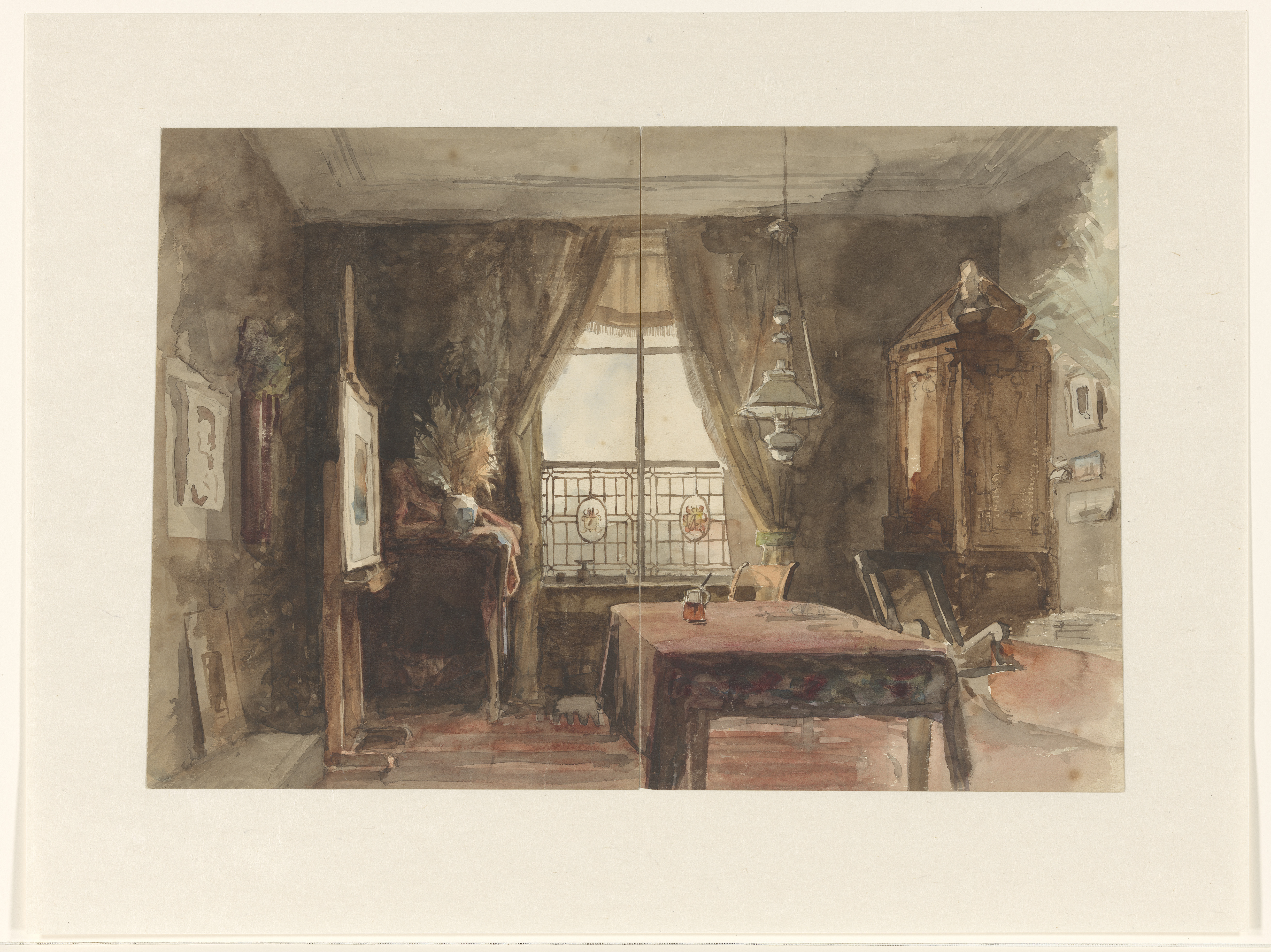 Interieur van een schildersatelier