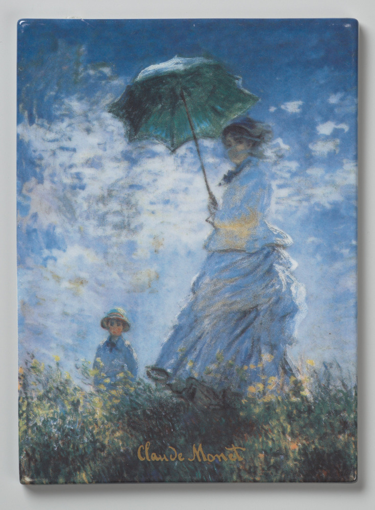 Tegel in druktechniek, met voorstelling: vrouw met p...