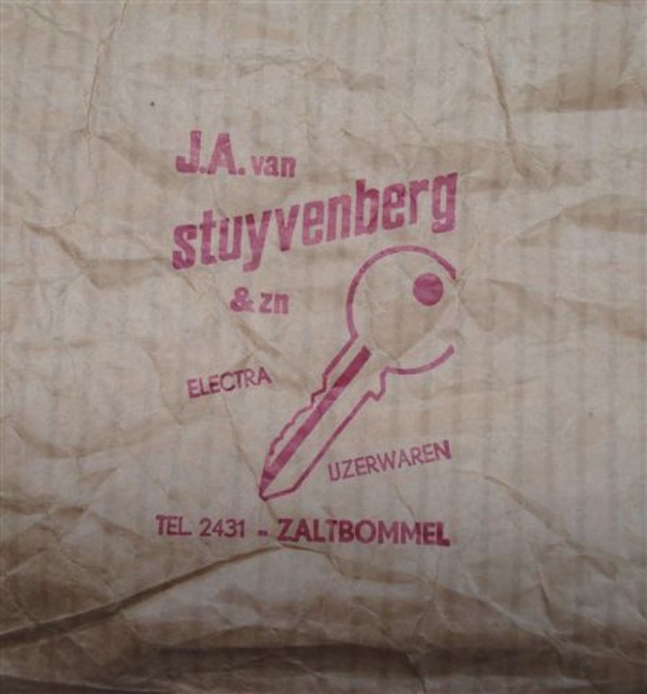 stuk inpakpapier van J.A.Stuyvenberg electra en ijze...