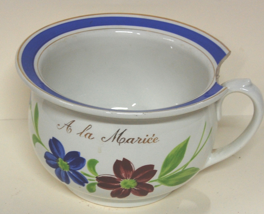 kamerpot. Rond model met brede platte rand, versierd...
