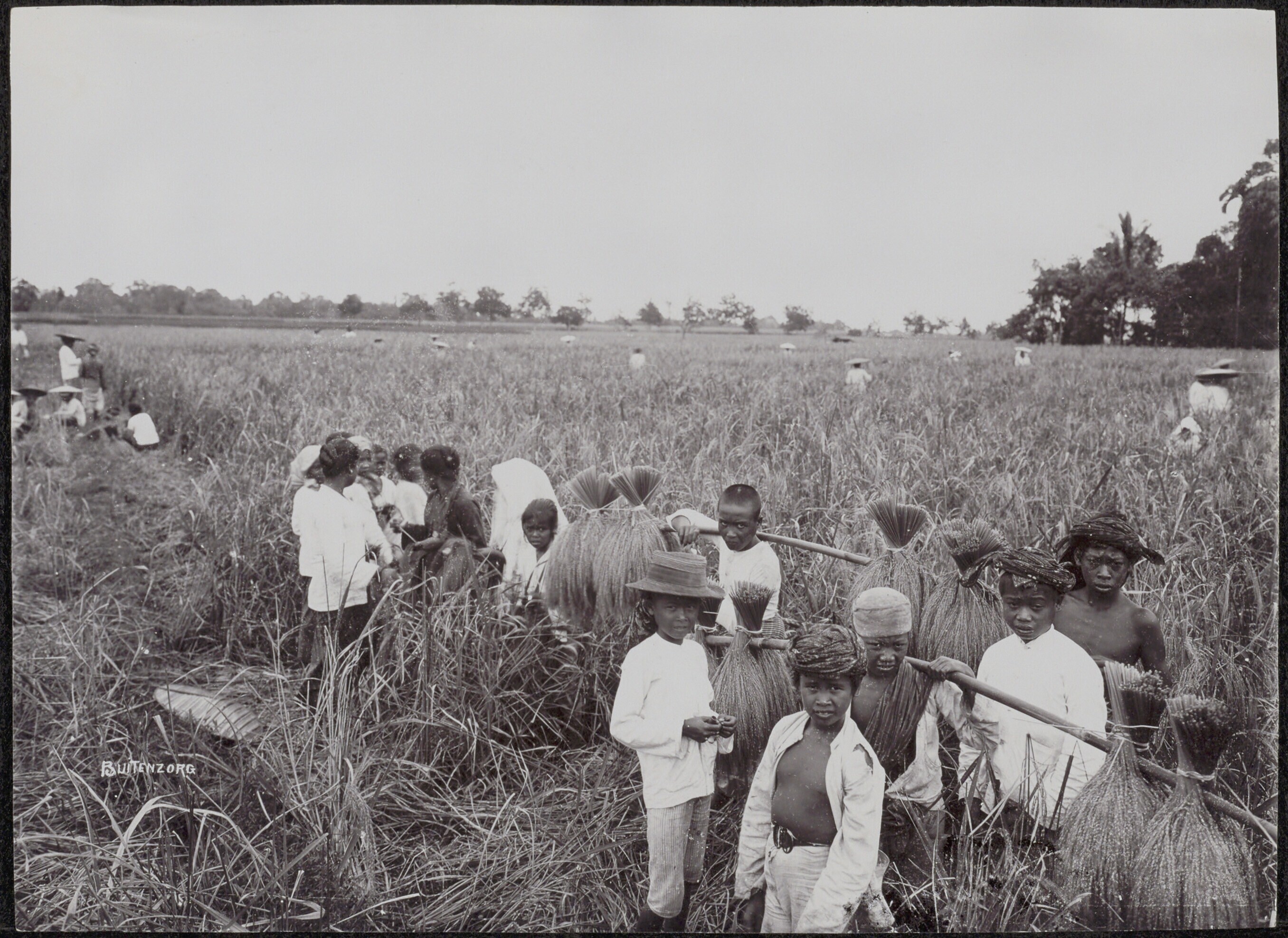 Kinderen tijdens de rijstoogst, Buitenzorg