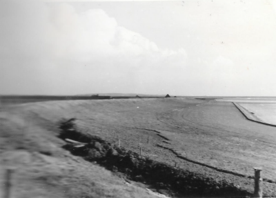 Aanleg van de ringdijk van Oostelijk Flevoland, 1951...