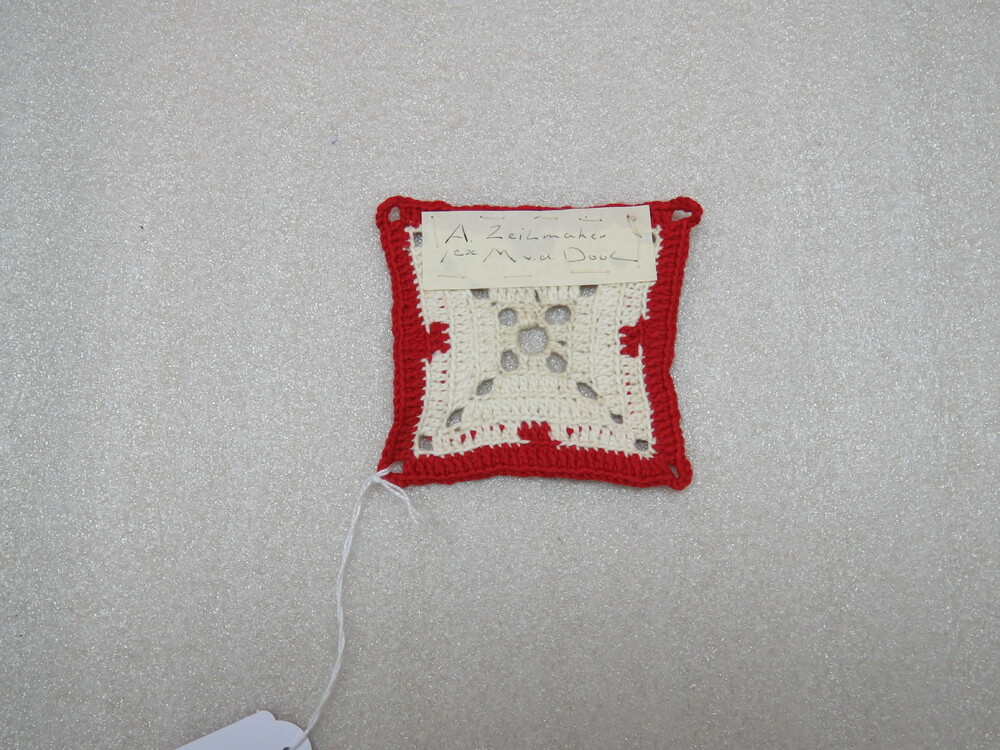 proeflap van witte en rode katoen gemaakt door A. Ze...