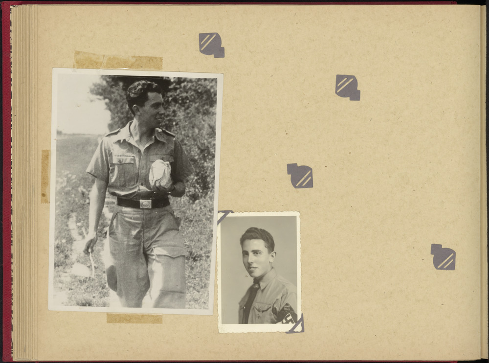 Twee foto's van dezelfde jonge Duitse landmachtssold...