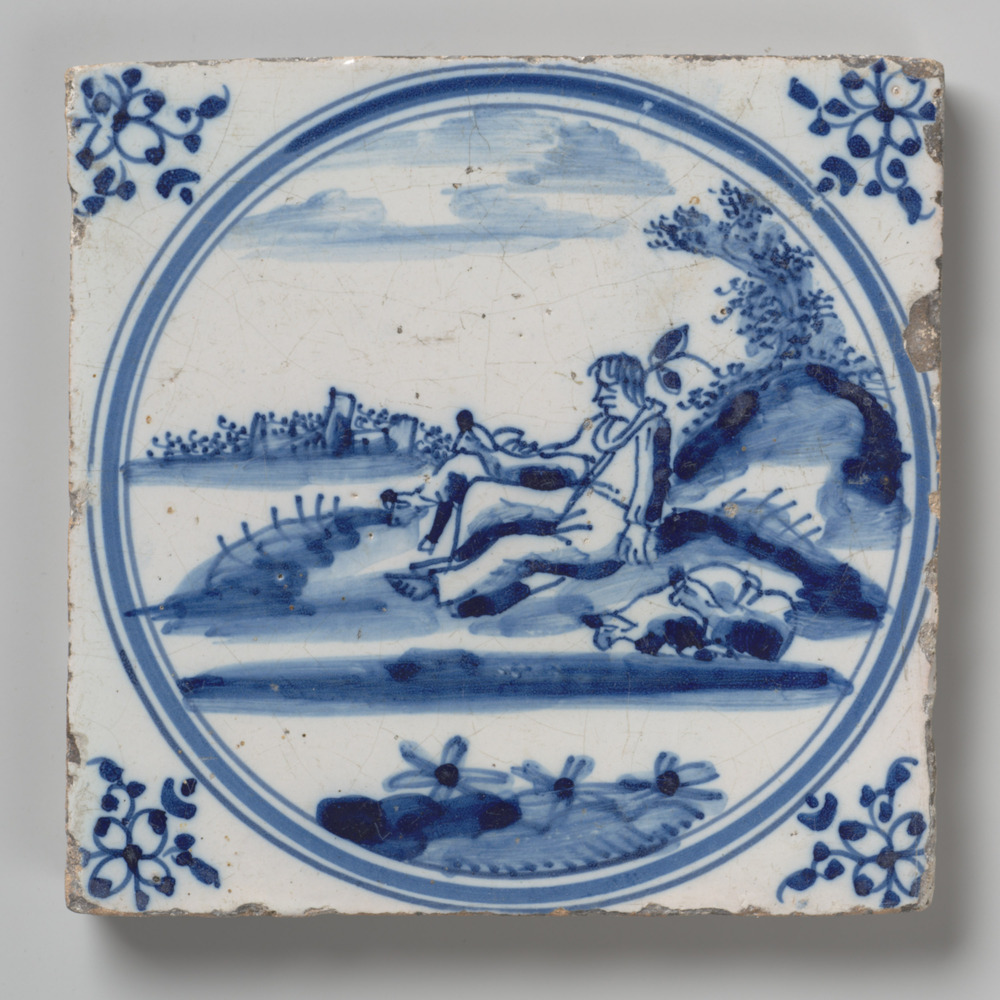 Tegel van keramiek, tinglazuur, voorstellende een be...