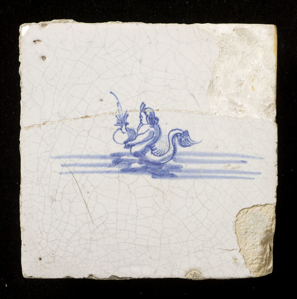 tegel van aardewerk met tinglazuur, voorstellende: z...