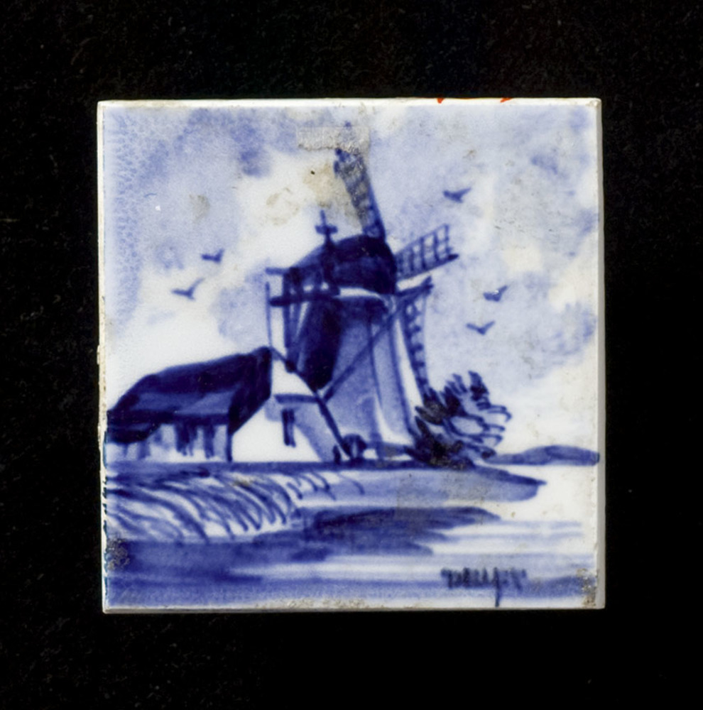 Tegel van keramiek, opglazuur, voorstellende een lan...