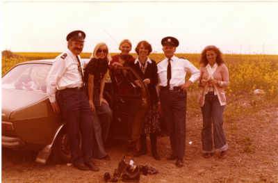 Ambtenaren van de Rijkspolitie bij fotomodellen die ...