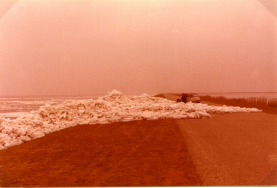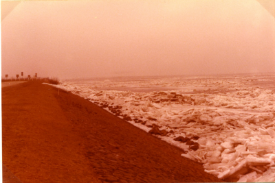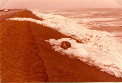 Kruiend ijs op de Oostvaardersdijk, winter 1975-1976