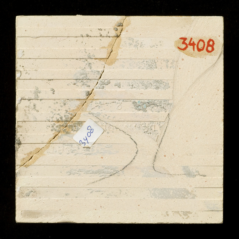 Tegel van keramiek met tinglazuur, voorstellende: De...