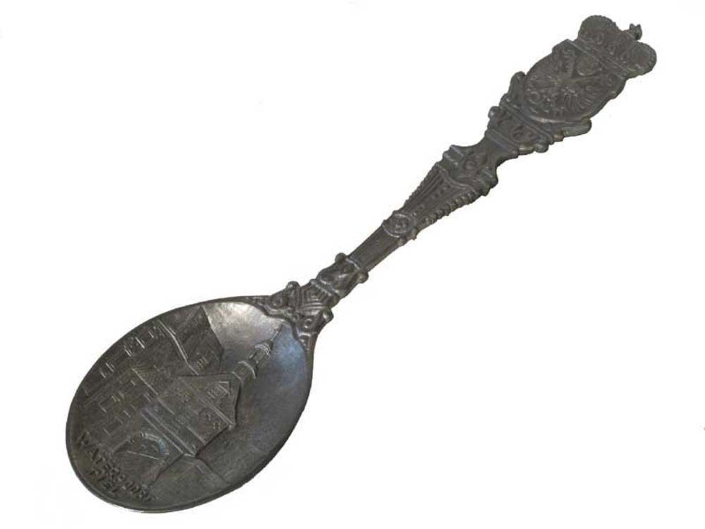 Lepel van tin met afbeelding van de Waterpoort te Ti...