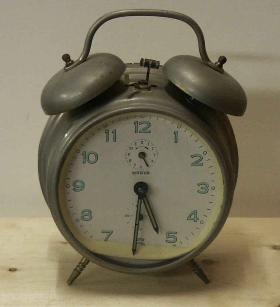 wekker van metaal met twee bellen. Fabrikaat ´Wamda´...