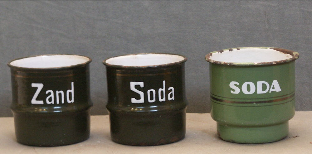zand-zeep-sodastel met rekje van groen geëmailleerd ...