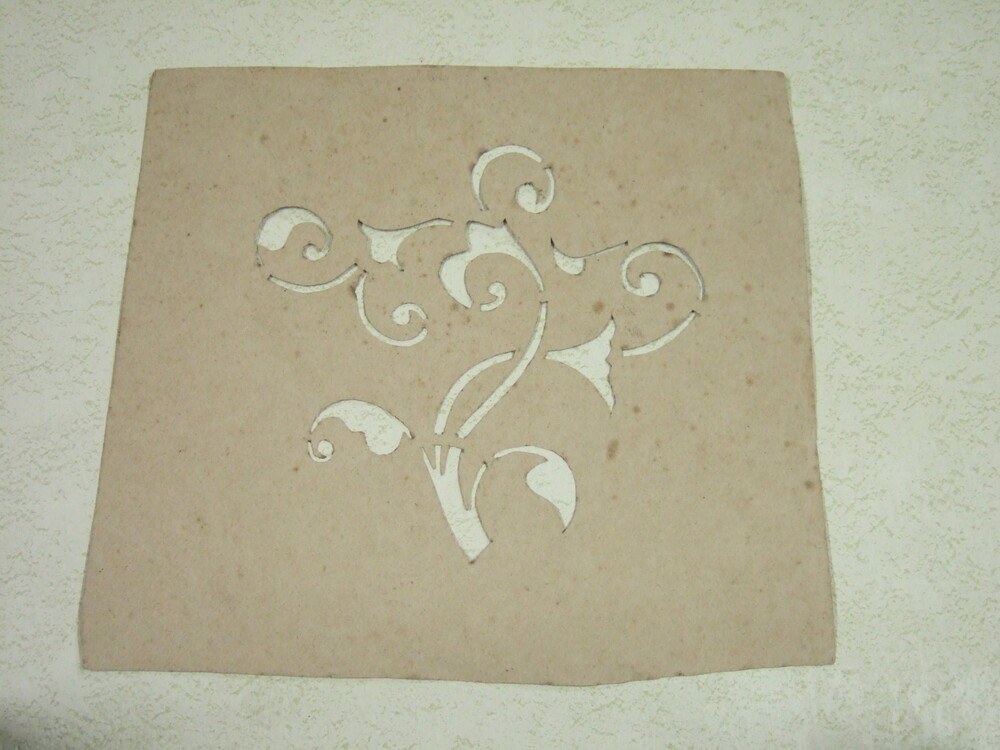 Sjabloon in papier met uitsnede van floraal motief.