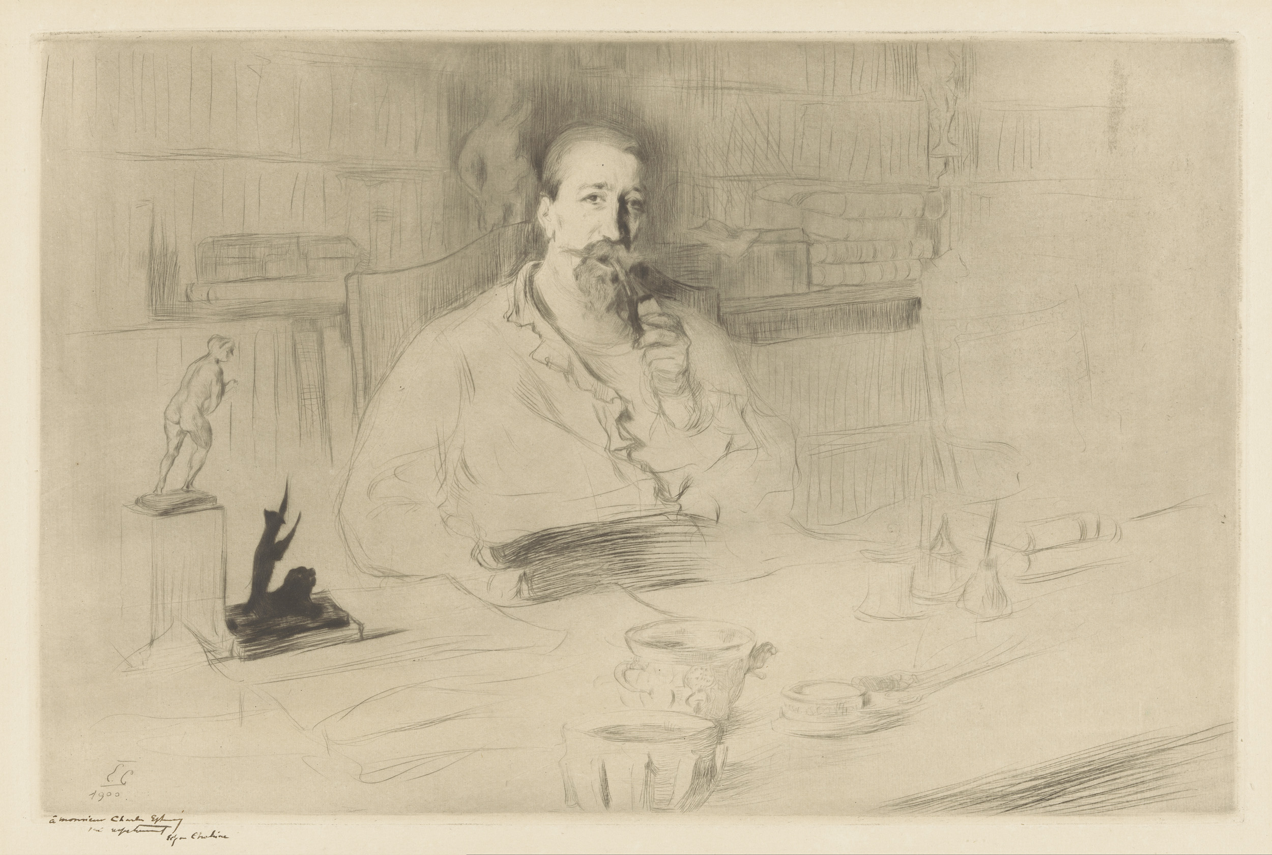 Portret van Anatole France achter zijn bureau