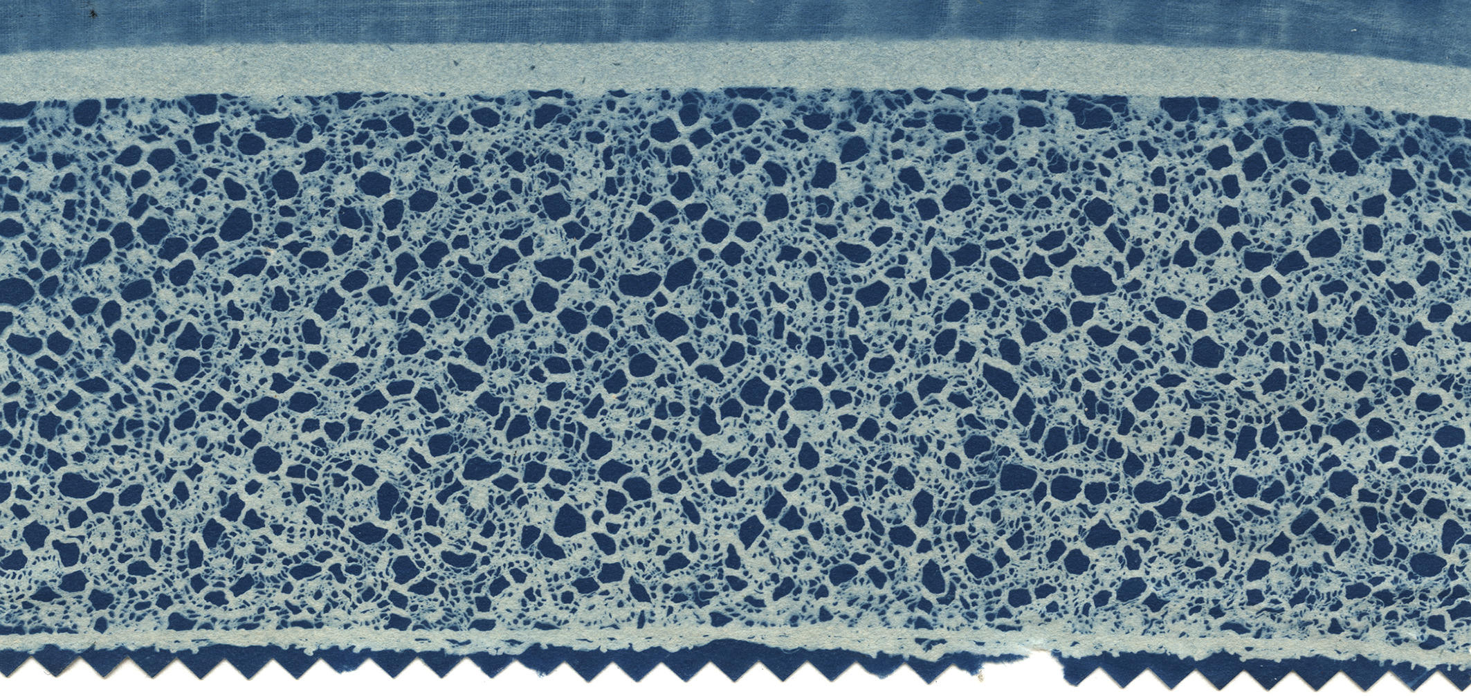 Detail hullekap met Parijse kloskant, Marken (blauwd...
