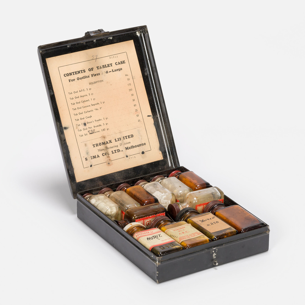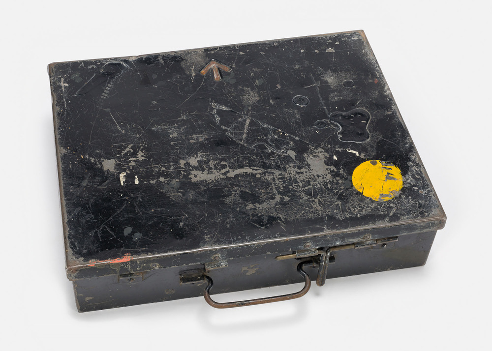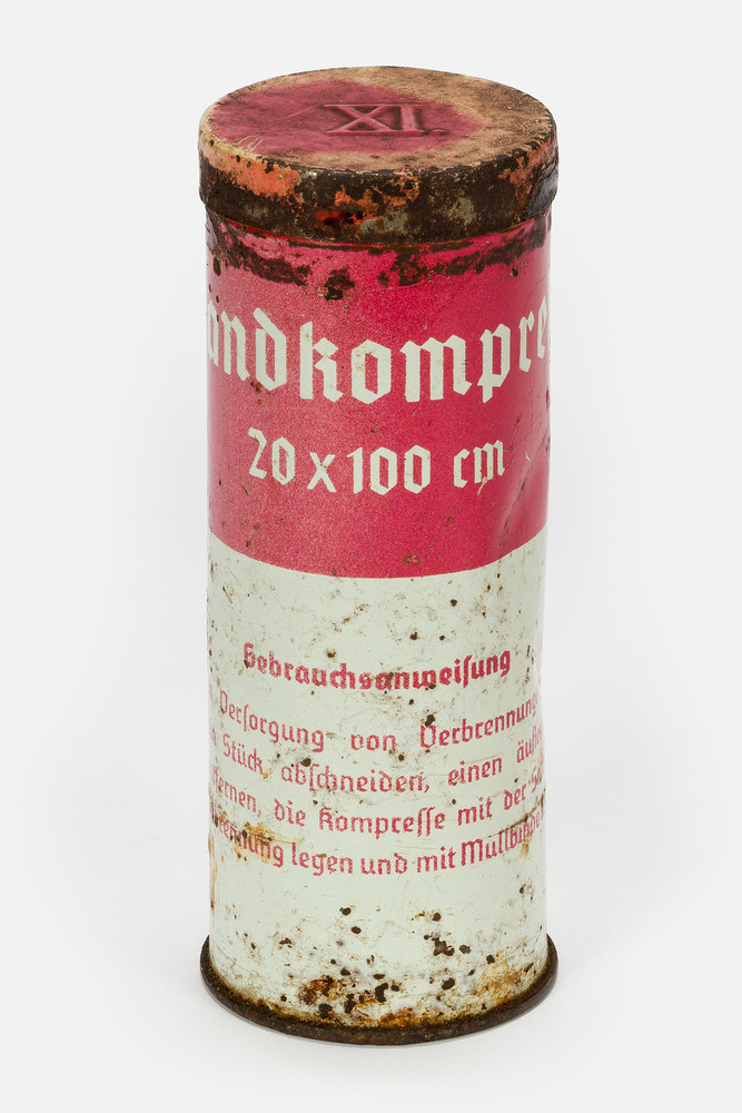 Brits model zwarte verbandtrommel van metaal, onderd...