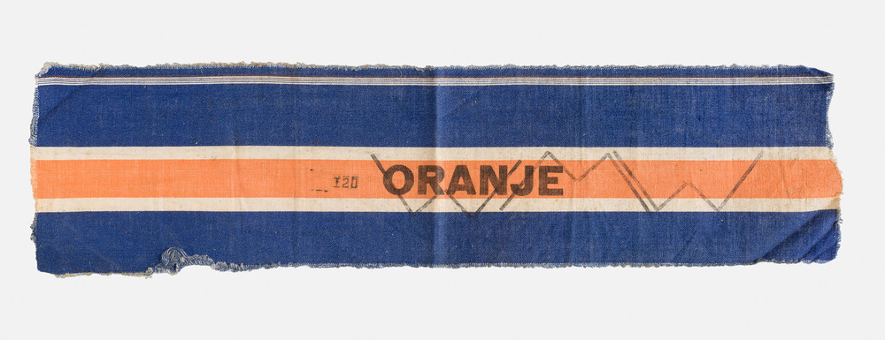 Blauw, wit met oranje mouwband van de Nederlandse Bi...