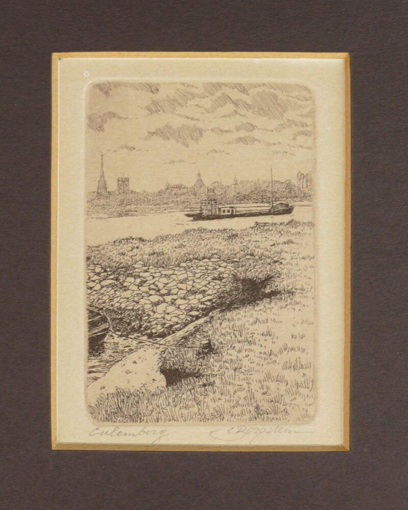 gravure voorstellende zicht op de Lek, gesigneerd C....