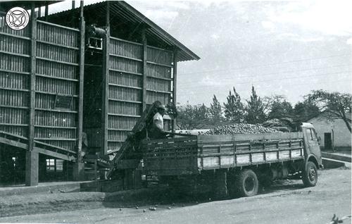 Packing house met een volgeladen vrachtwagen
