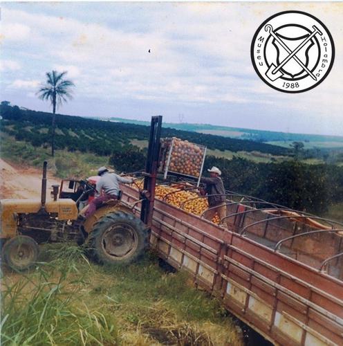 Inladen van de sinaasappeloogst op een boomgaard