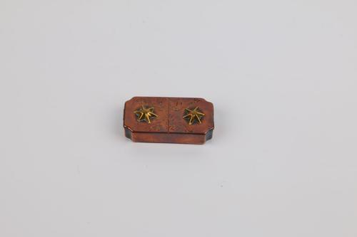 Snuifdoos van roodkoper met twee geelkoperen sterren...