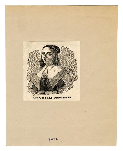 Houtsnede met portret van Anna Maria van Schurman