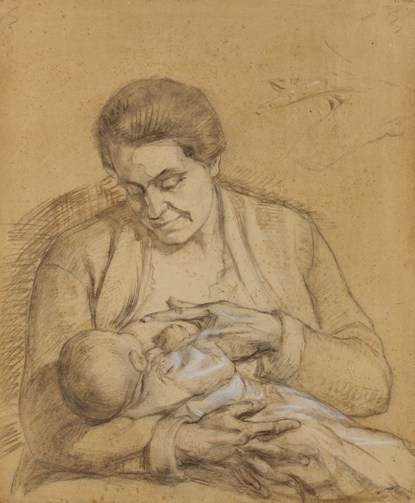 Vrouw schilder met oudste zoon