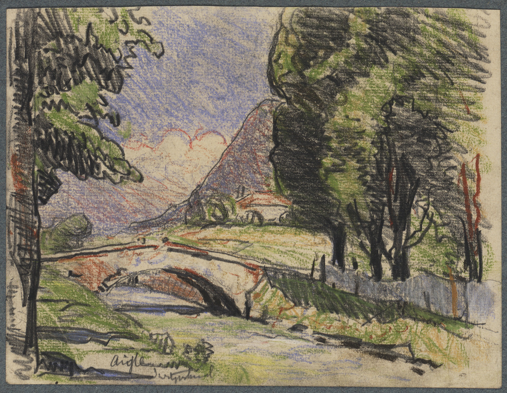 Landschap met rivier en brug bij Aigle, Zwitserland