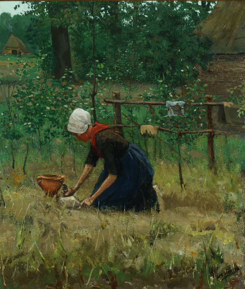 Dochter Marie aan het breien, met geit