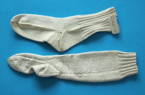 Gebreide sokken, wit katoen. Annie Wiepking
