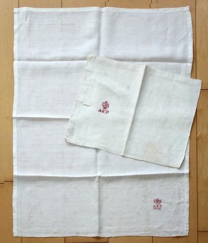 Merklap, Kaaslinnen met initialen en cijfers. Annie ...