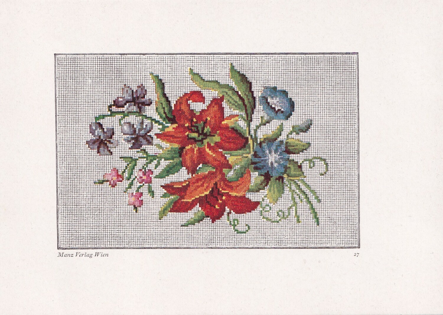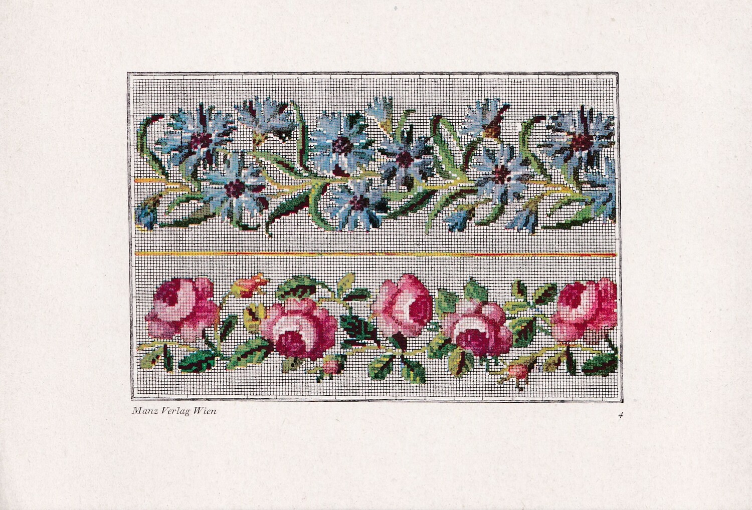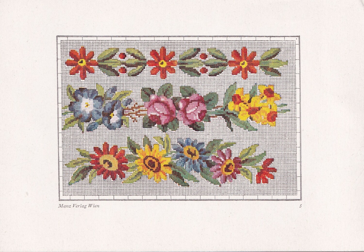 Factory produced The series is called Alt Viener Stickmuster: Petit Point with an introduction by Frieda Pollak-Sorer and published by Manz Verlag Vien. (1)