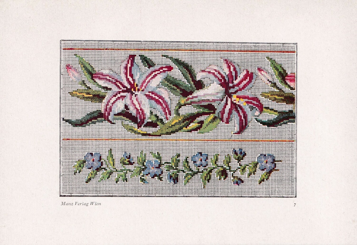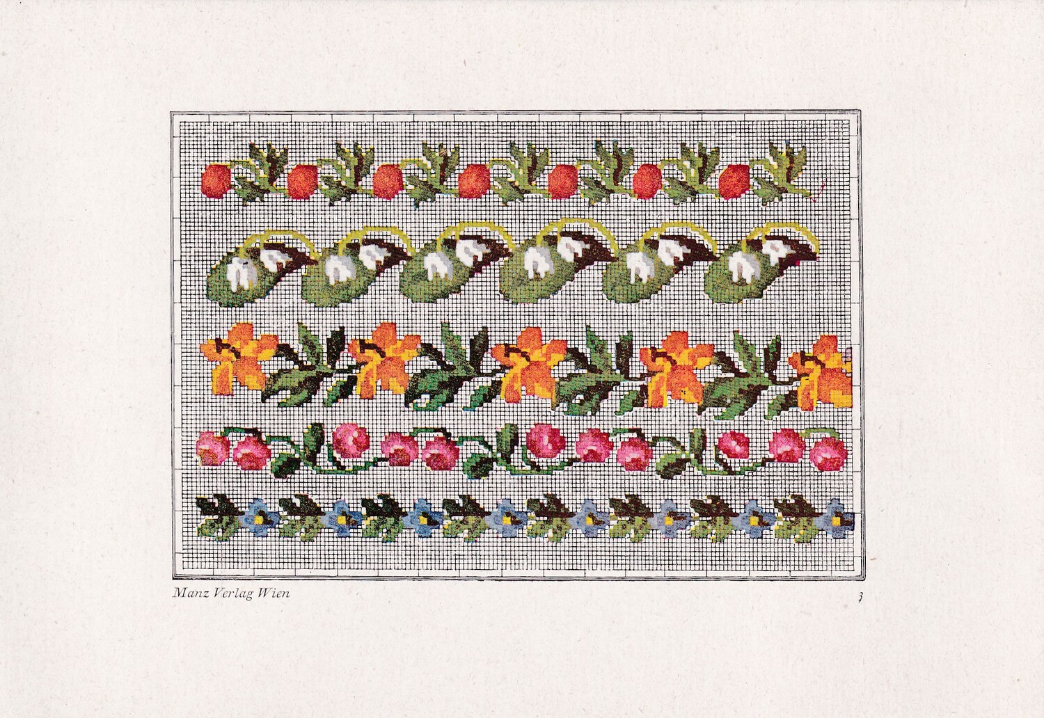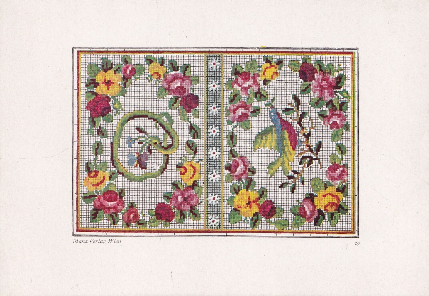 Factory produced The series is called Alt Viener Stickmuster: Petit Point with an introduction by Frieda Pollak-Sorer and published by Manz Verlag Vien. (1)