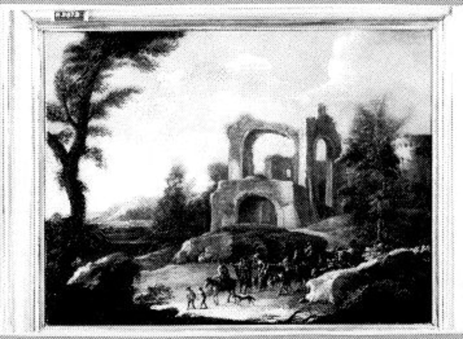 Landschap met klassieke ruïnes en de geheime vlucht ...