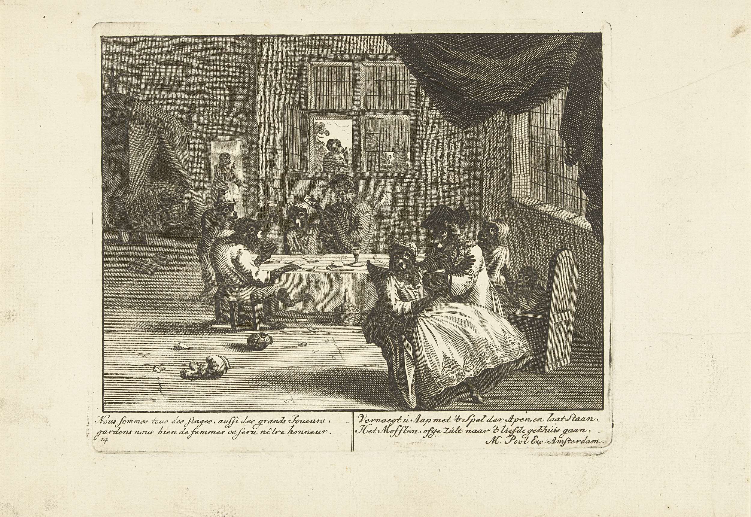 Apen in een herberg, ca. 1720