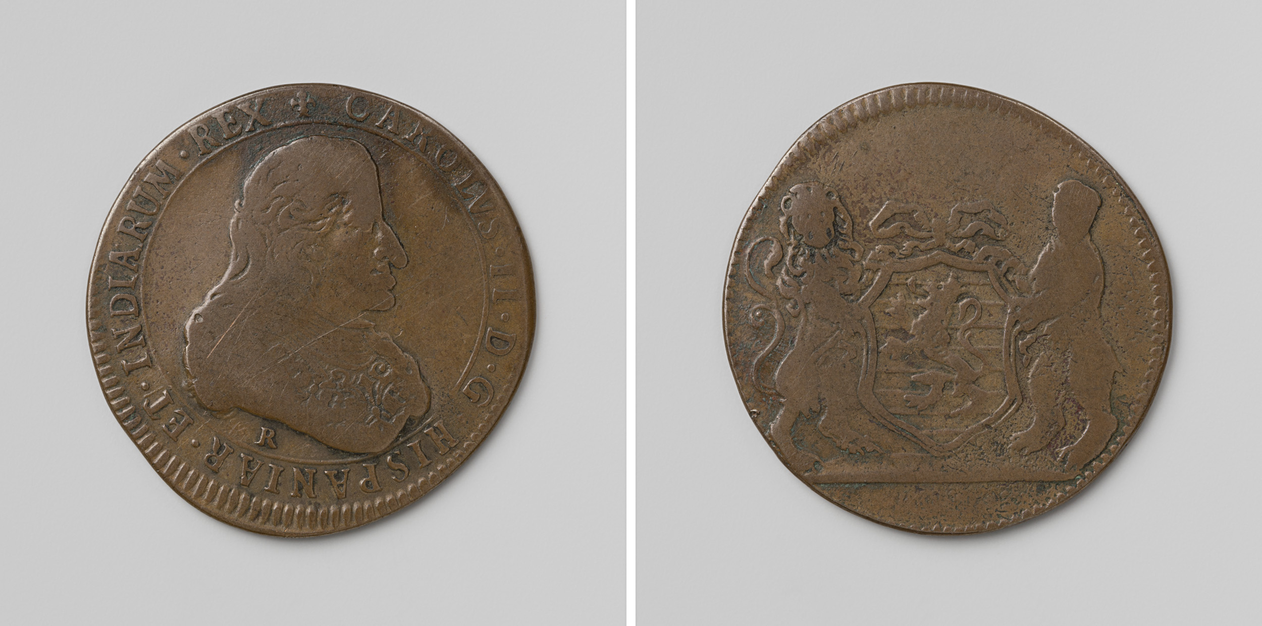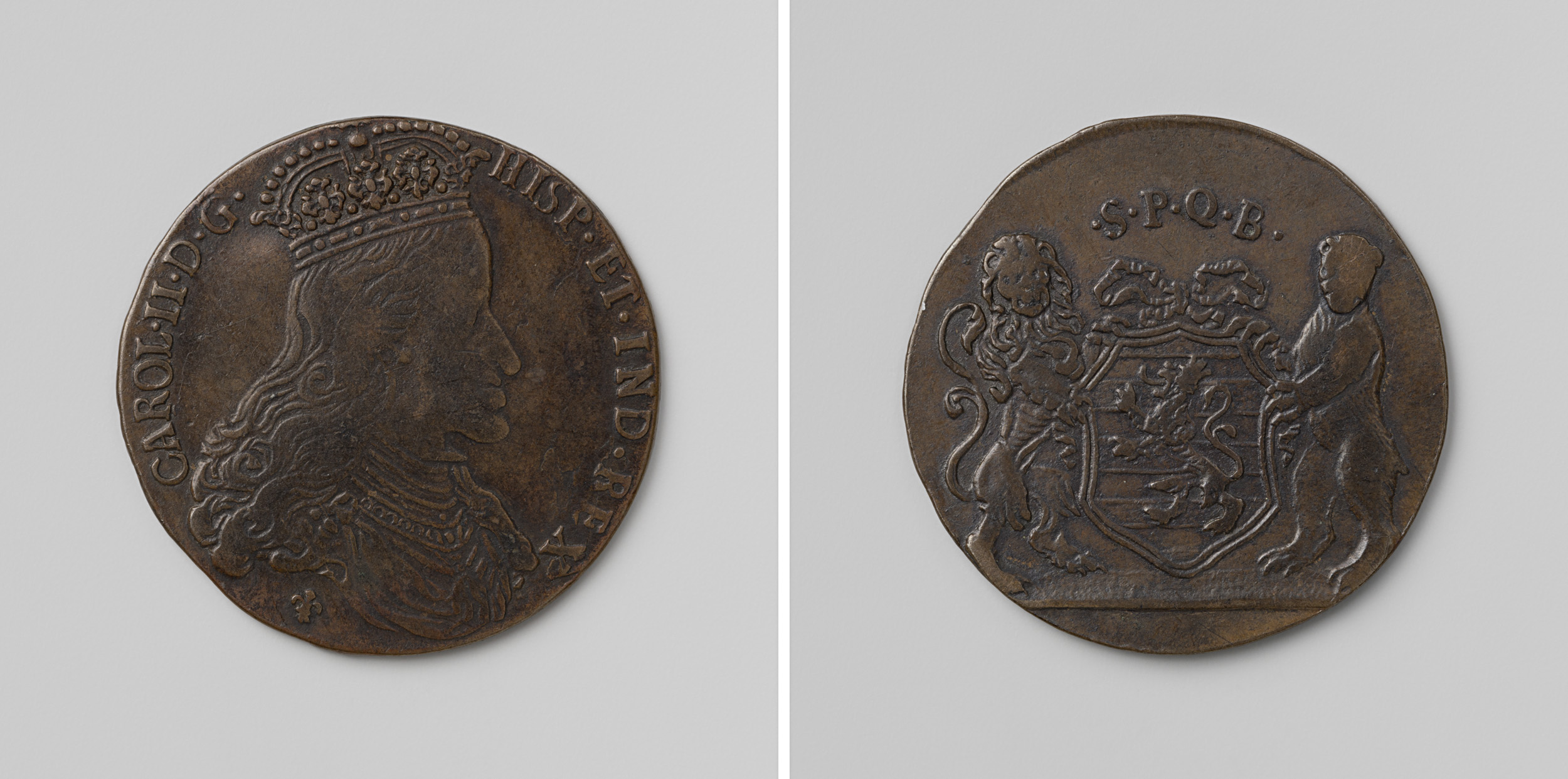Karel II, koning van Spanje, rekenpenning geslagen o...