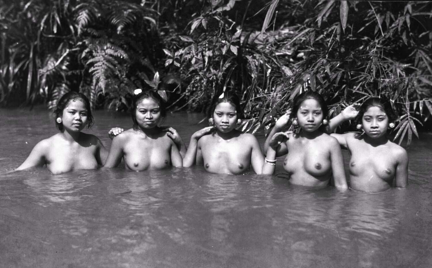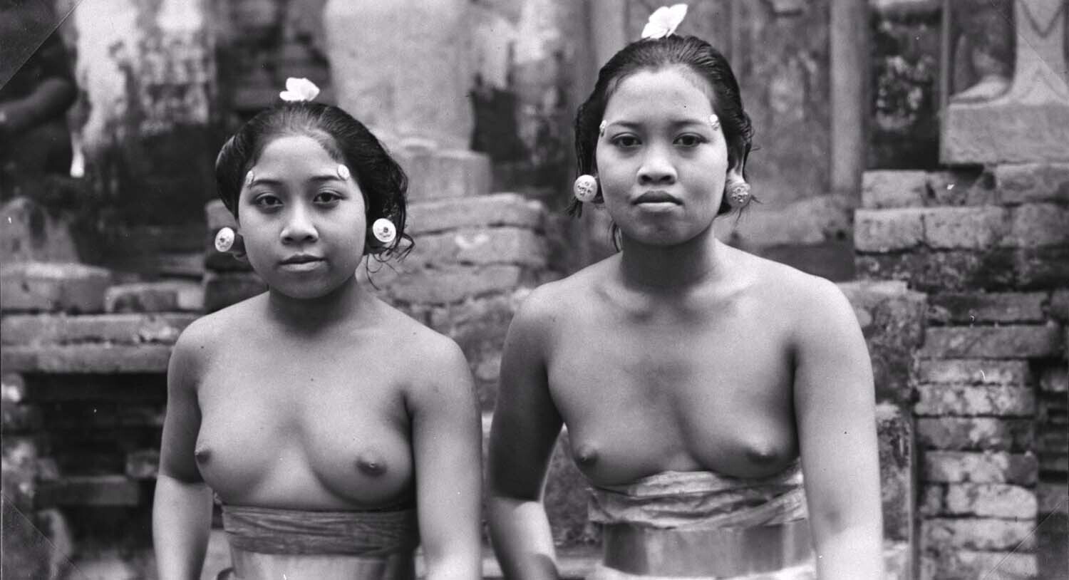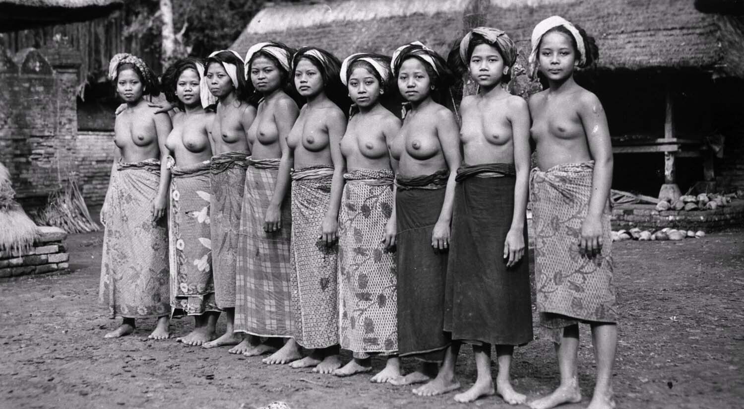 Portret van vijf jonge Balinese vrouwen poserend in ...