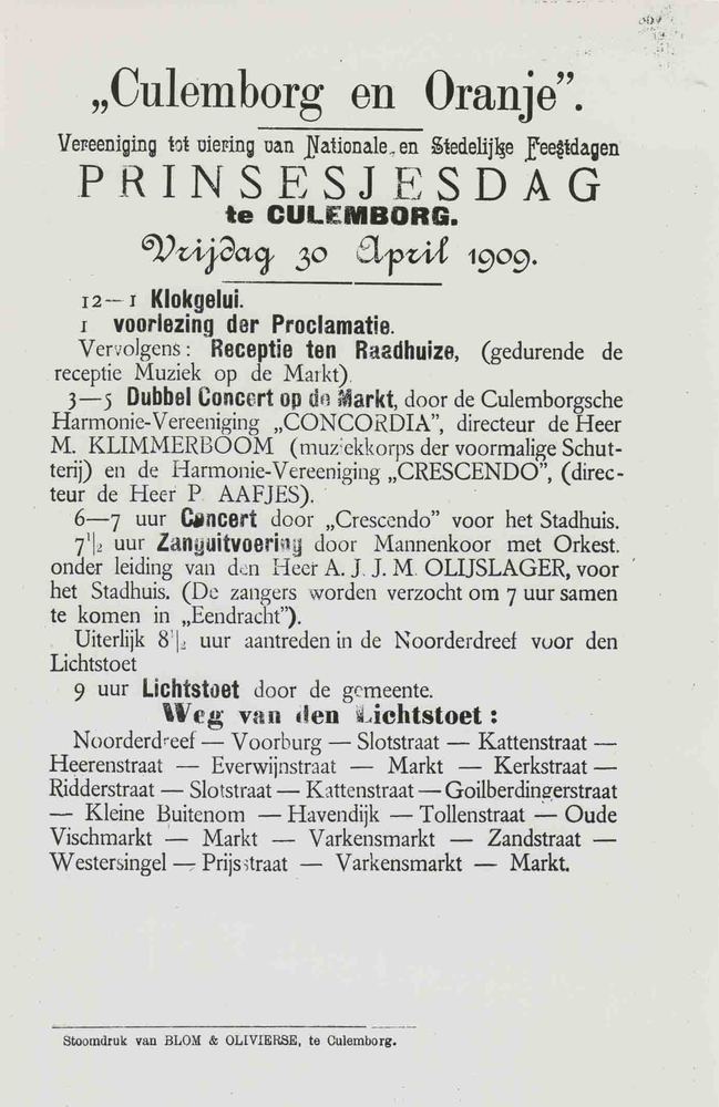 Foto, voorstellende Culemborg en Oranje, programma p...