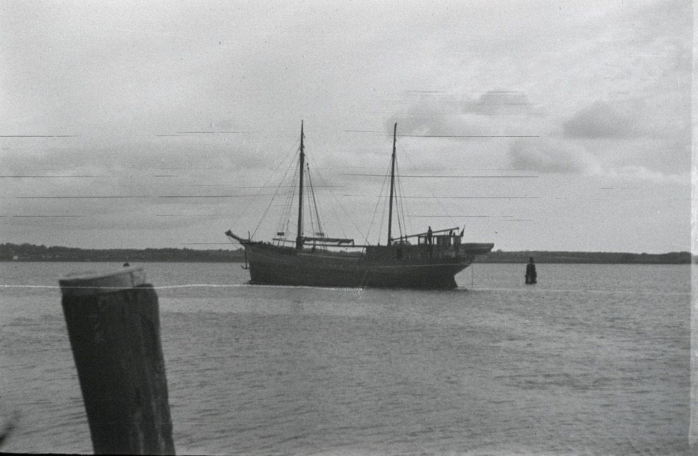 Een binnenvaartschip in een rivier tijdens de bezett...