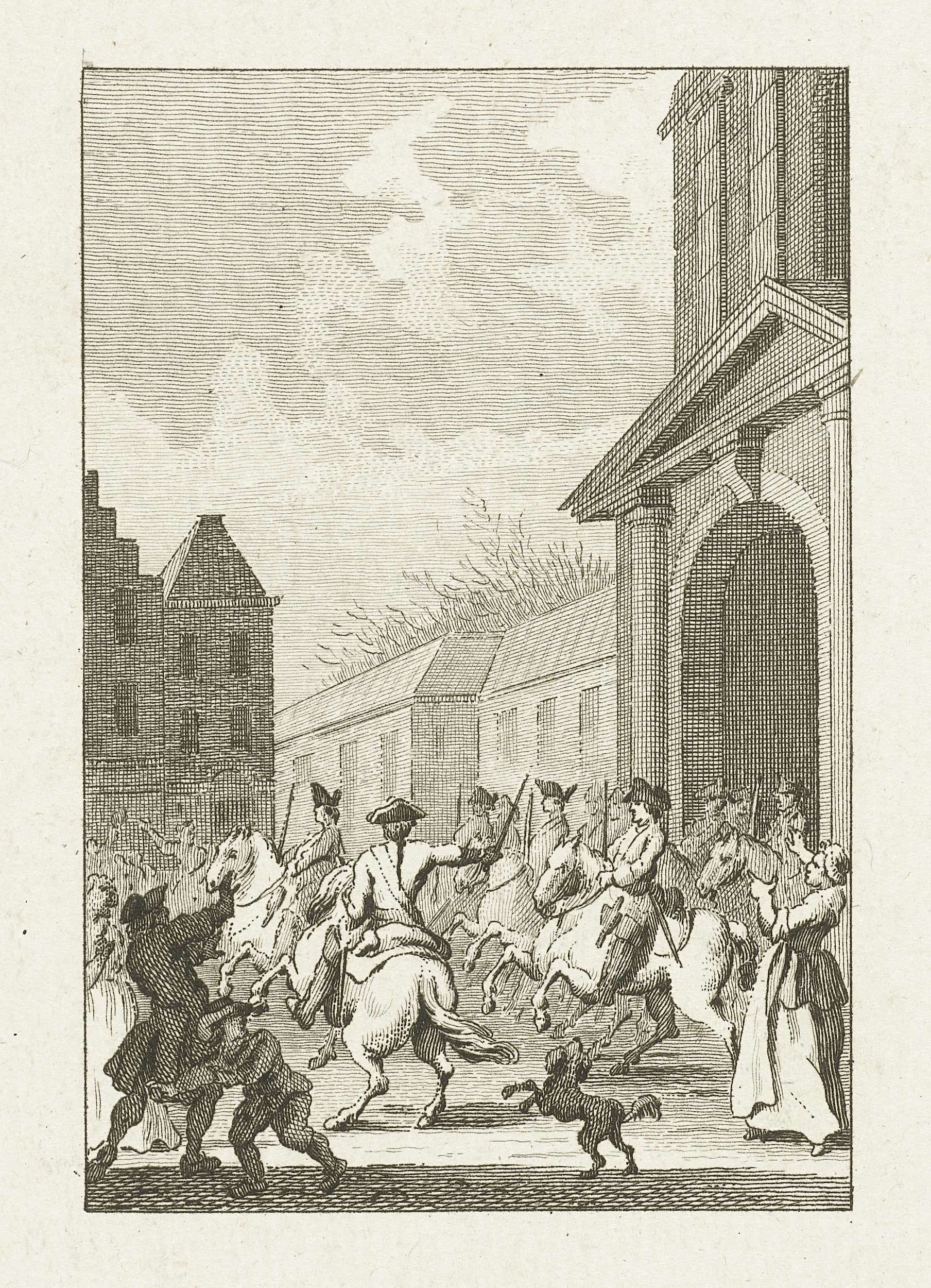 Dragonders trekken door de Witte Poort Leiden in, 1748