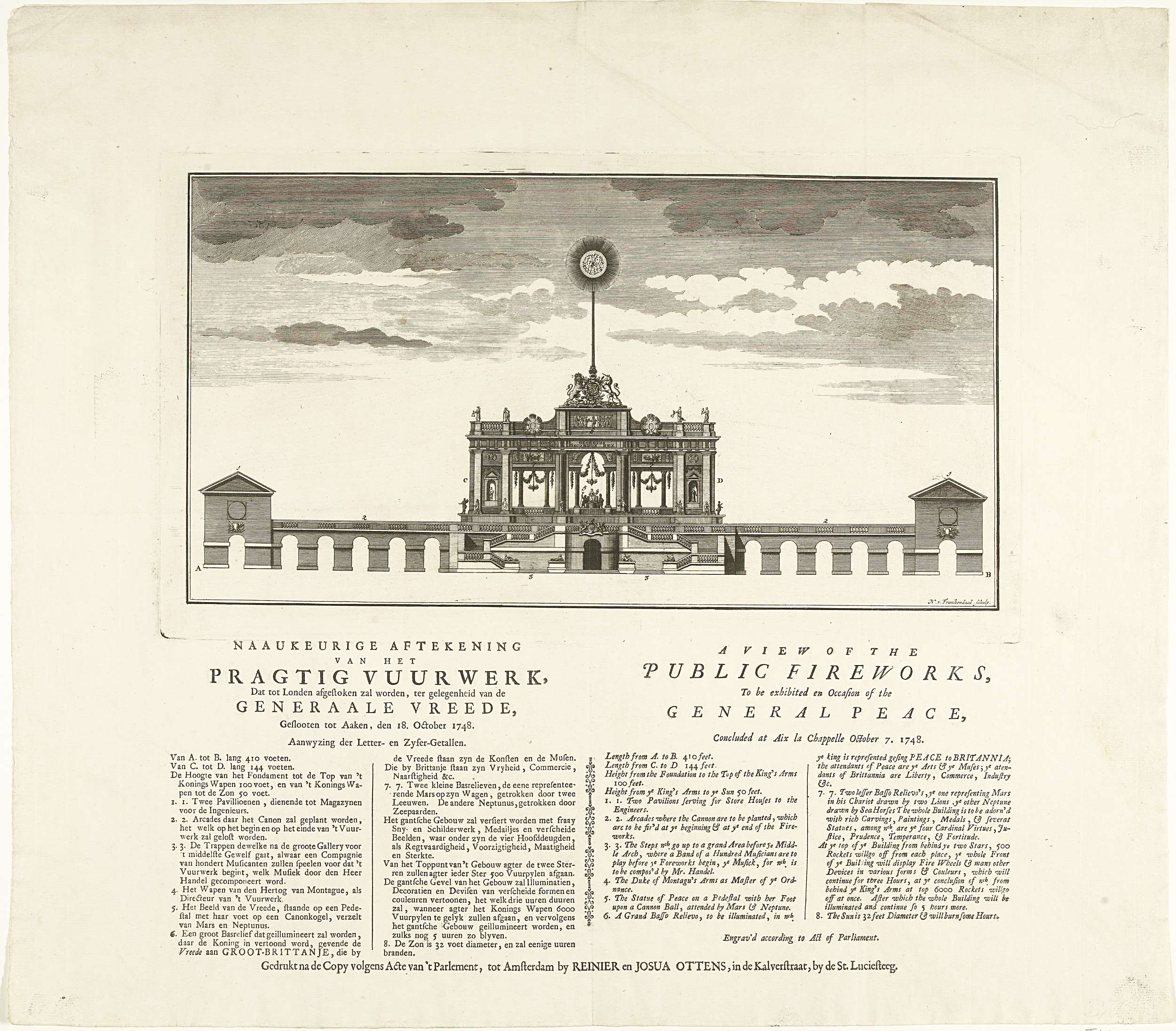 Stellage voor het vuurwerk te Londen voor de Vrede v...