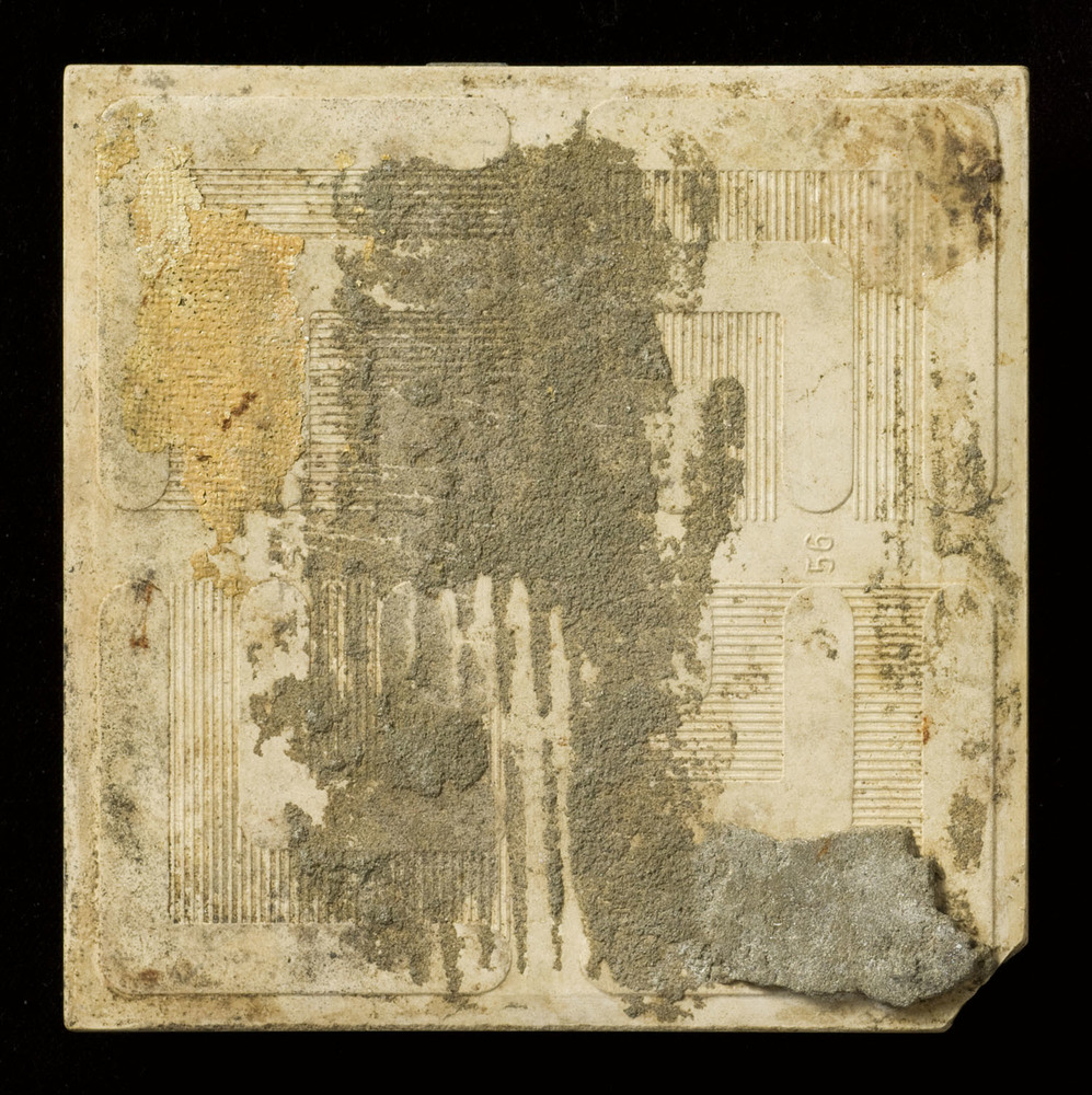 tegel van aardewerk, uitgefreesd, voorstellende: rei...