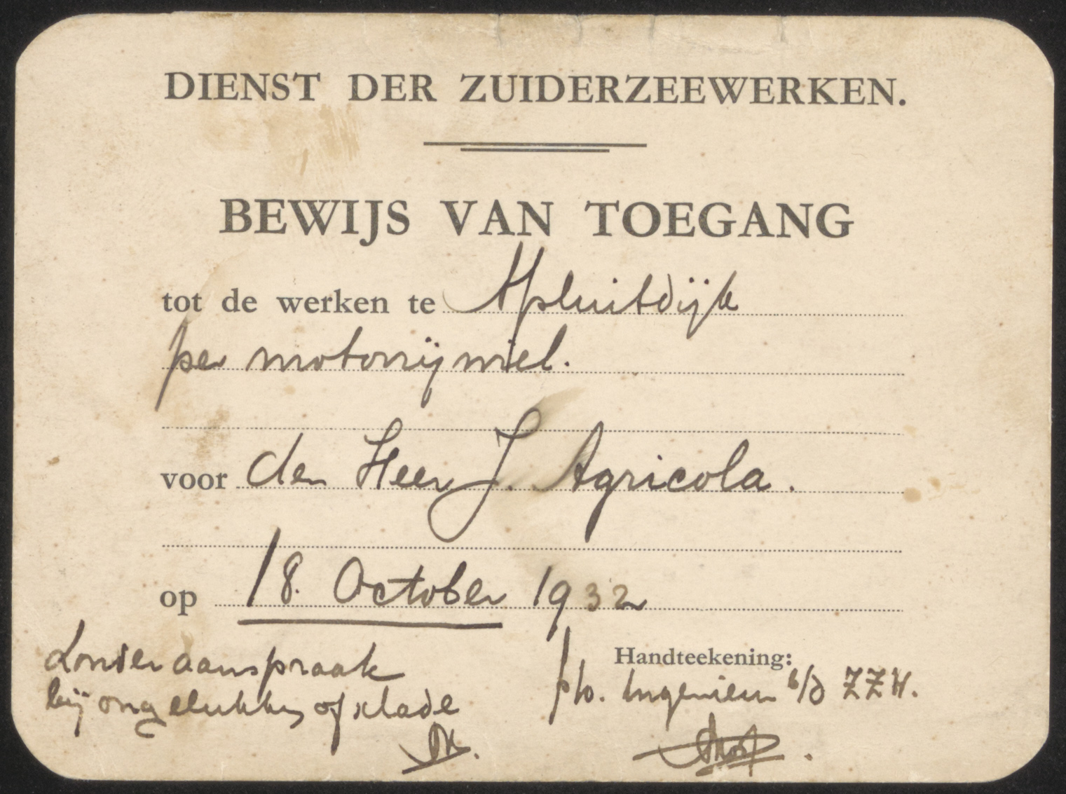 Bewijs van toegang Afsluitdijk