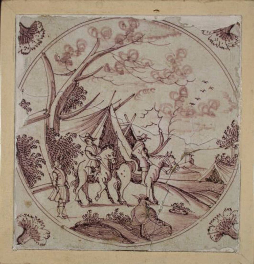 tegel van aardewerk met tinglazuur, voorstellende: h...