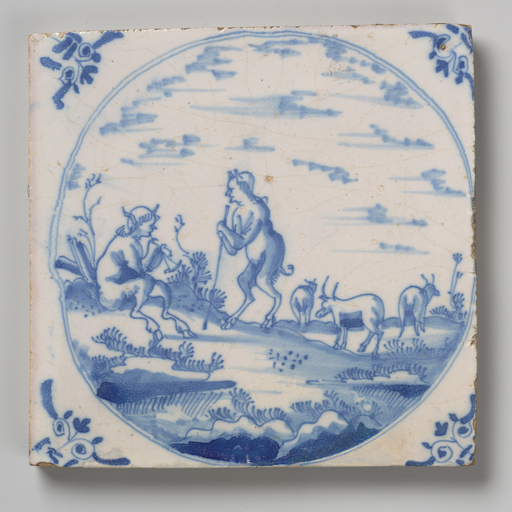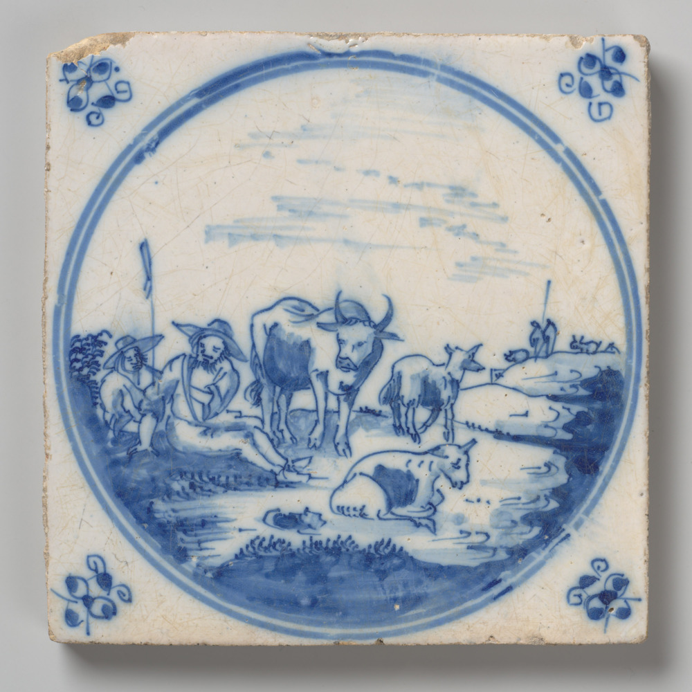 Tegel van keramiek, tinglazuur, voorstellende herder...